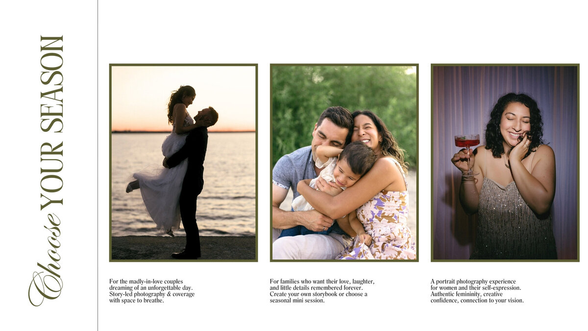 My style blends the best of both worlds: timeless portraits with space to breathe, and candid, documentary storytelling that keeps your gallery feeling alive. You’ll get calm direction when you need it, quiet coverage when you don’t, and a clear, thoughtful process from day one with timelines handled, kid-friendly flow, wardrobe guidance, transparent pricing, and beautiful galleries.